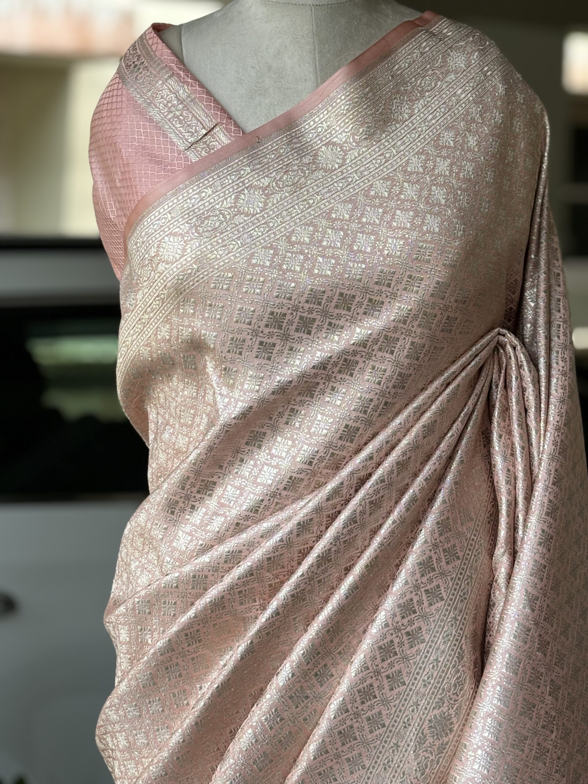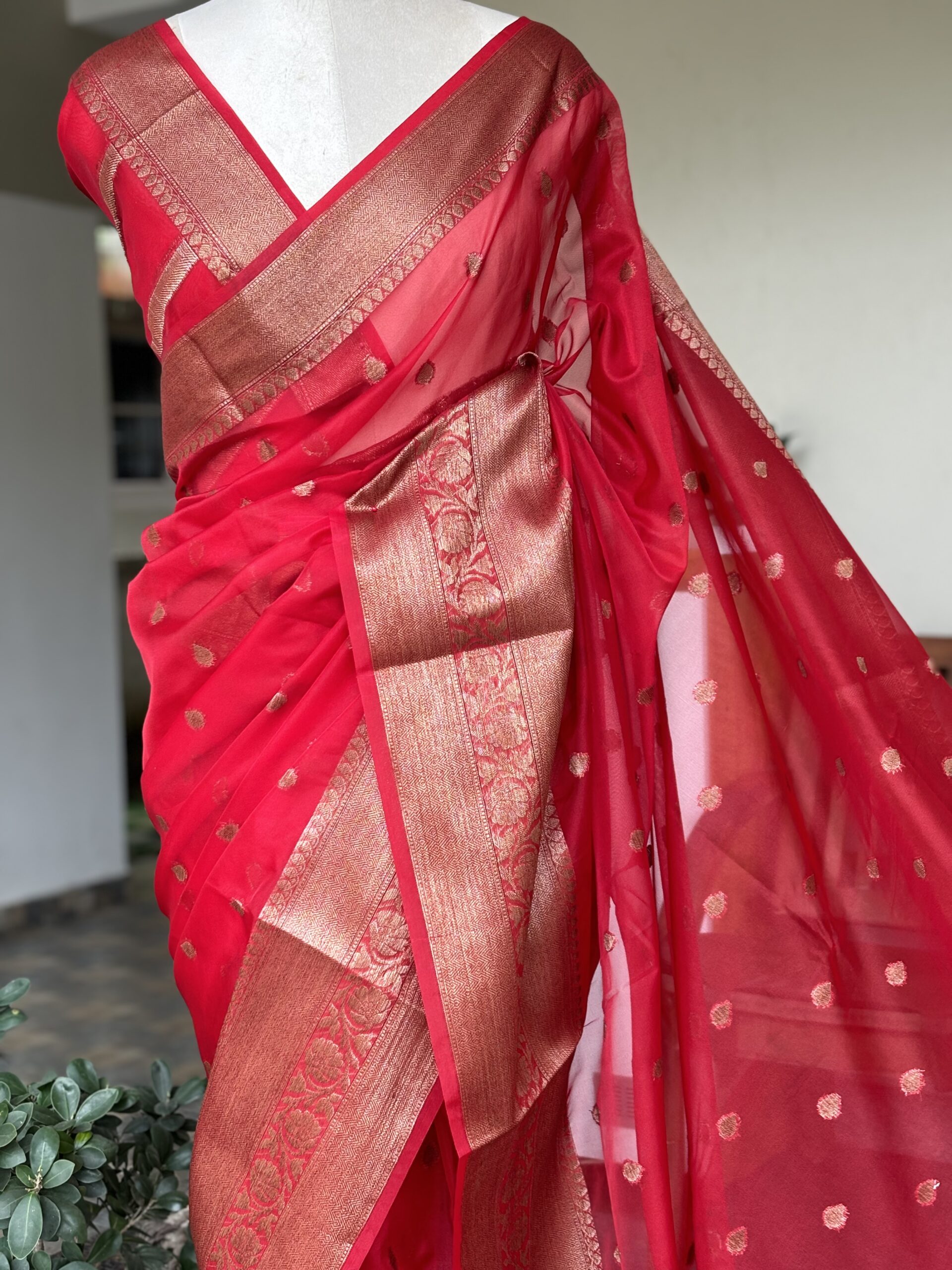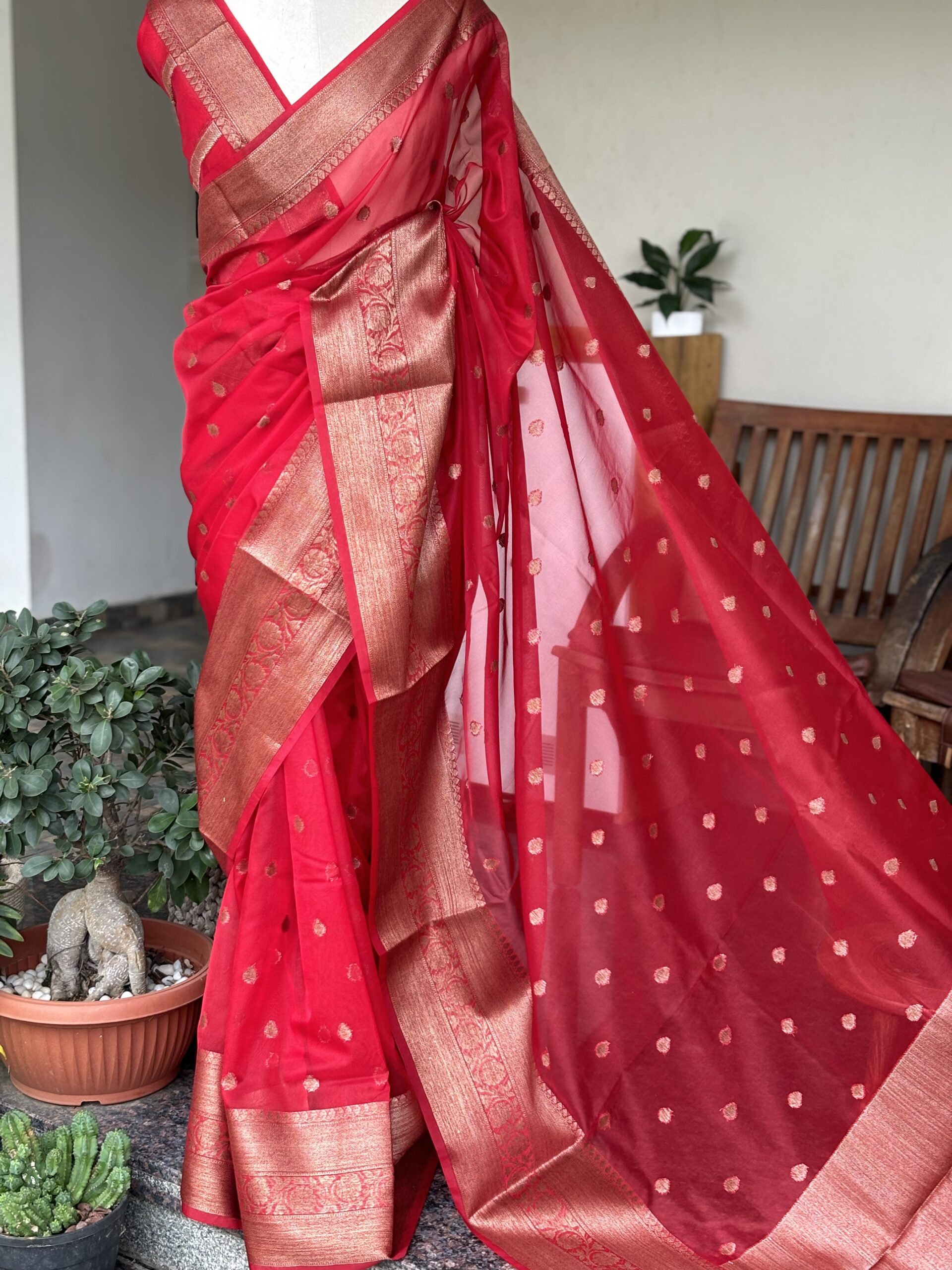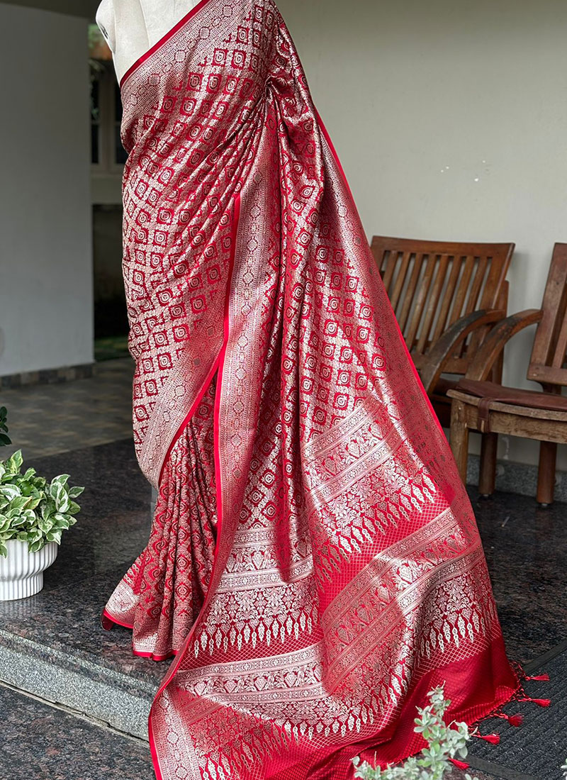 Katan Banarasi Silk Saree Red With Silver And Gold