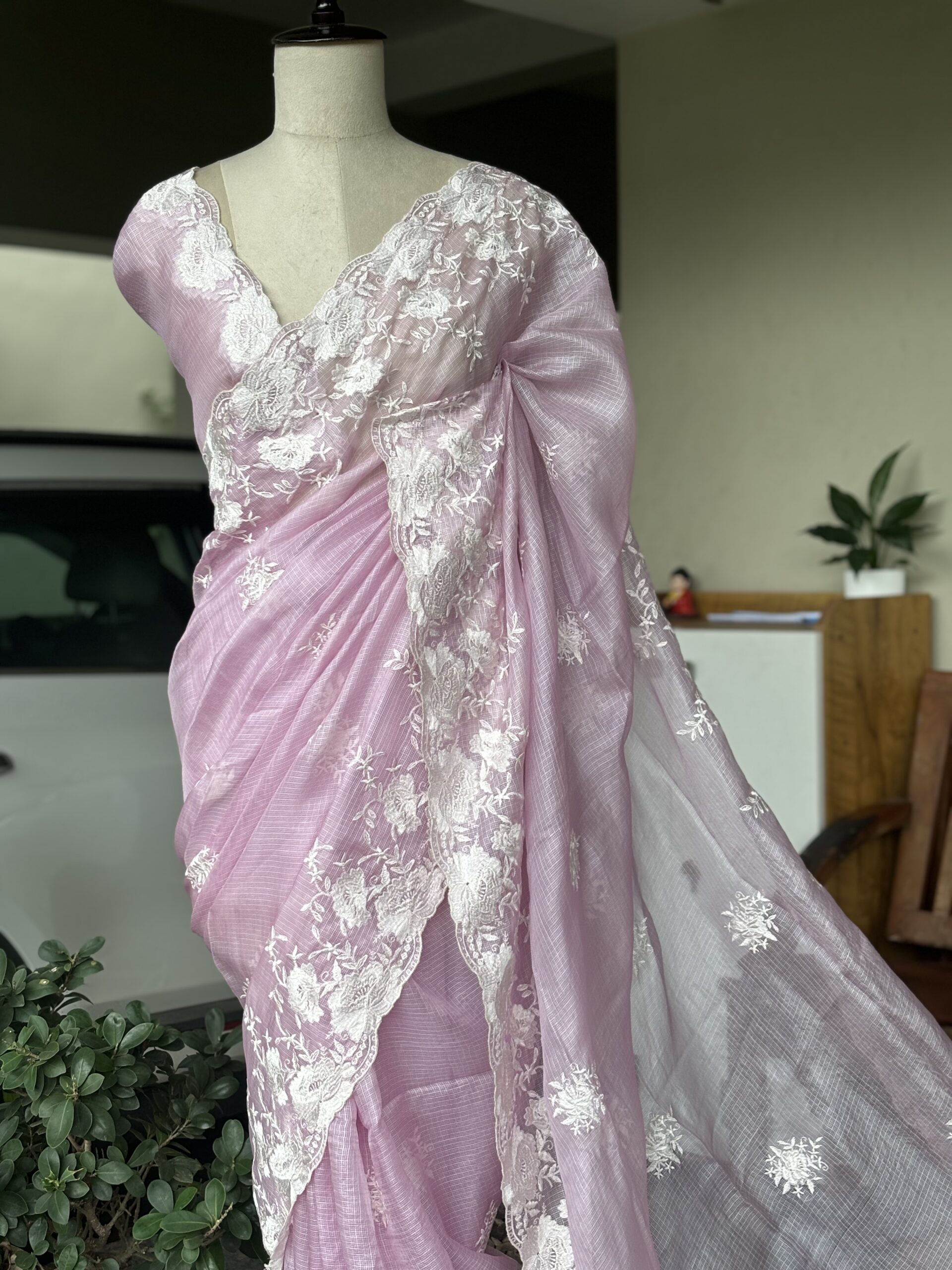 Elegant pure Tussar Kota saree in pastel pink with hand embroidery Clone Clone