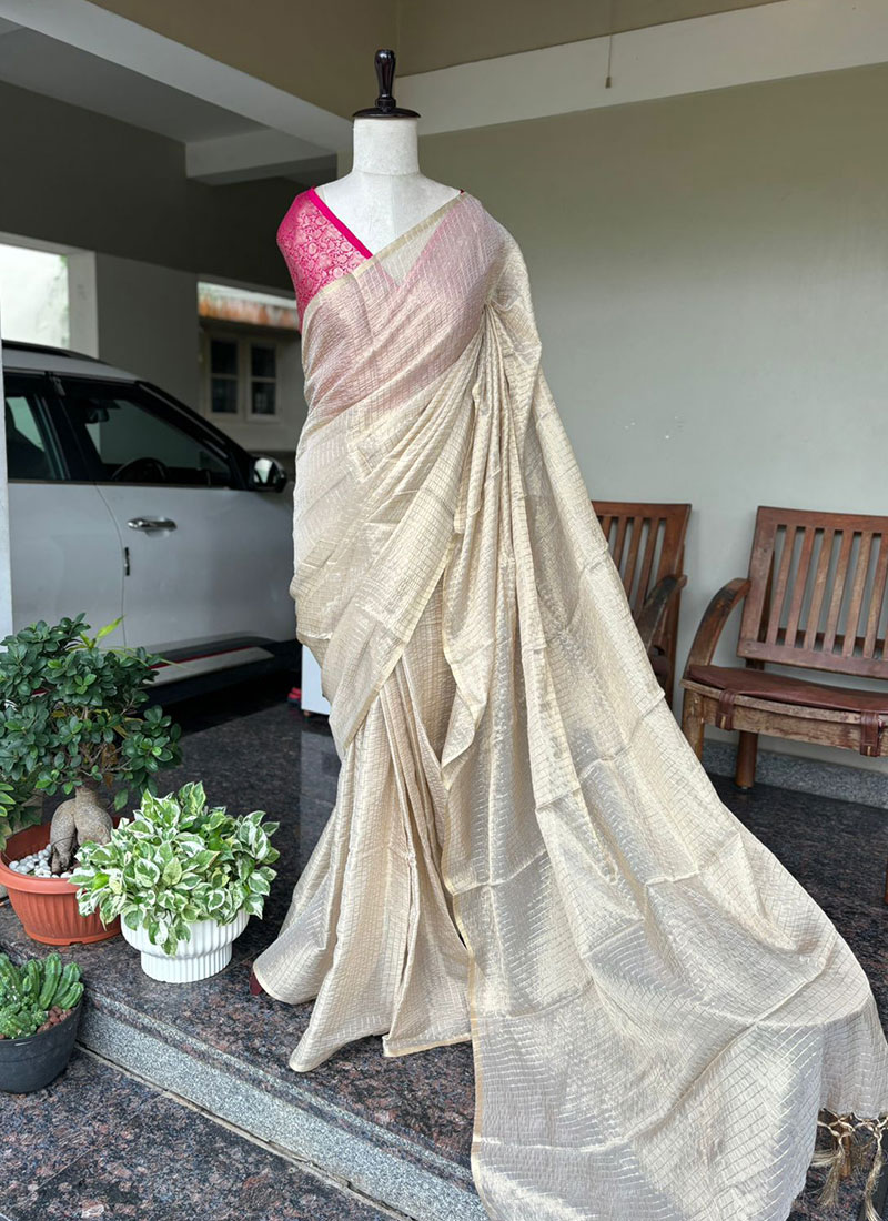 Katan Banarasi Silk saree with gold and silver zari waevings.