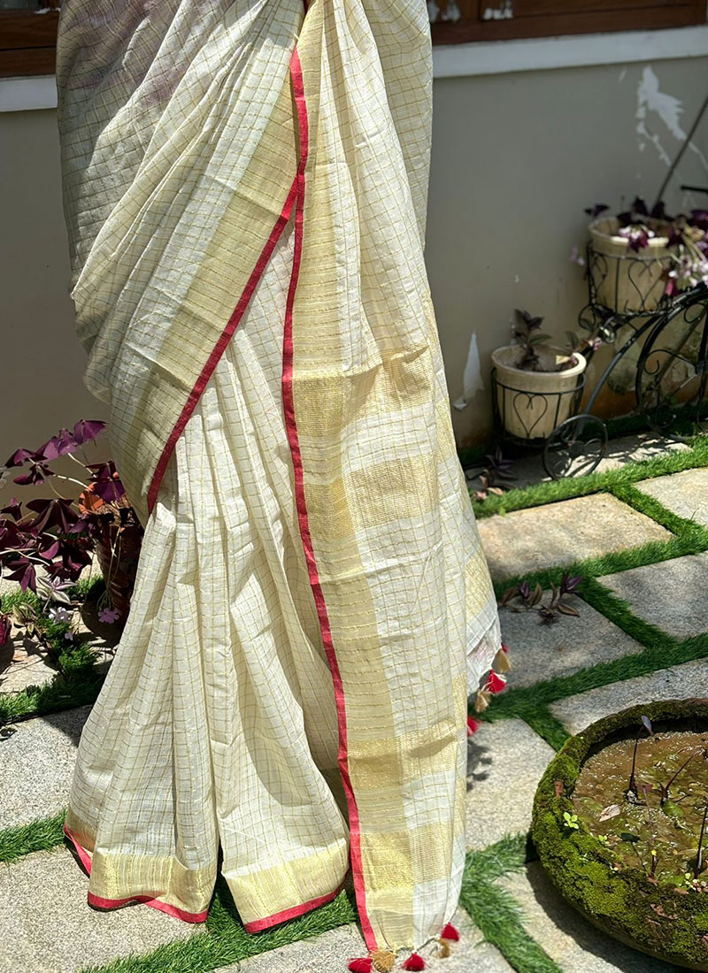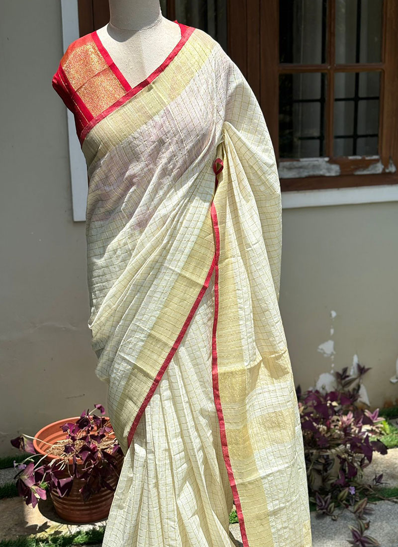 Semi Kora Organza Banarasi Saree – Elegant Red